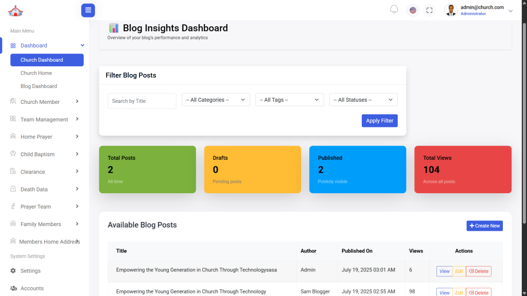 I built a full-featured Church Management System using ASP.NET Core MVC to replace manual, paper-based processes with an intuitive, secure web application.